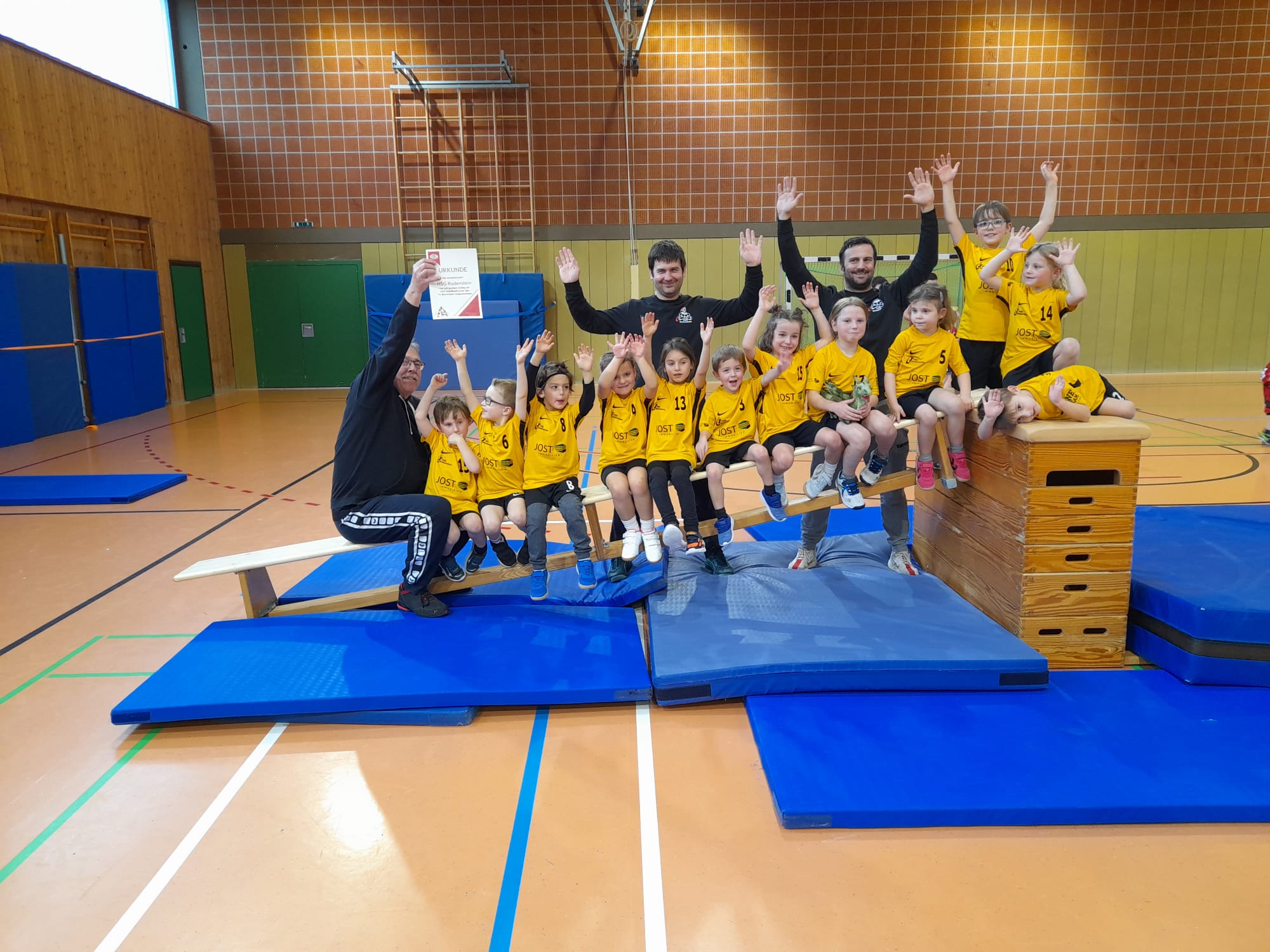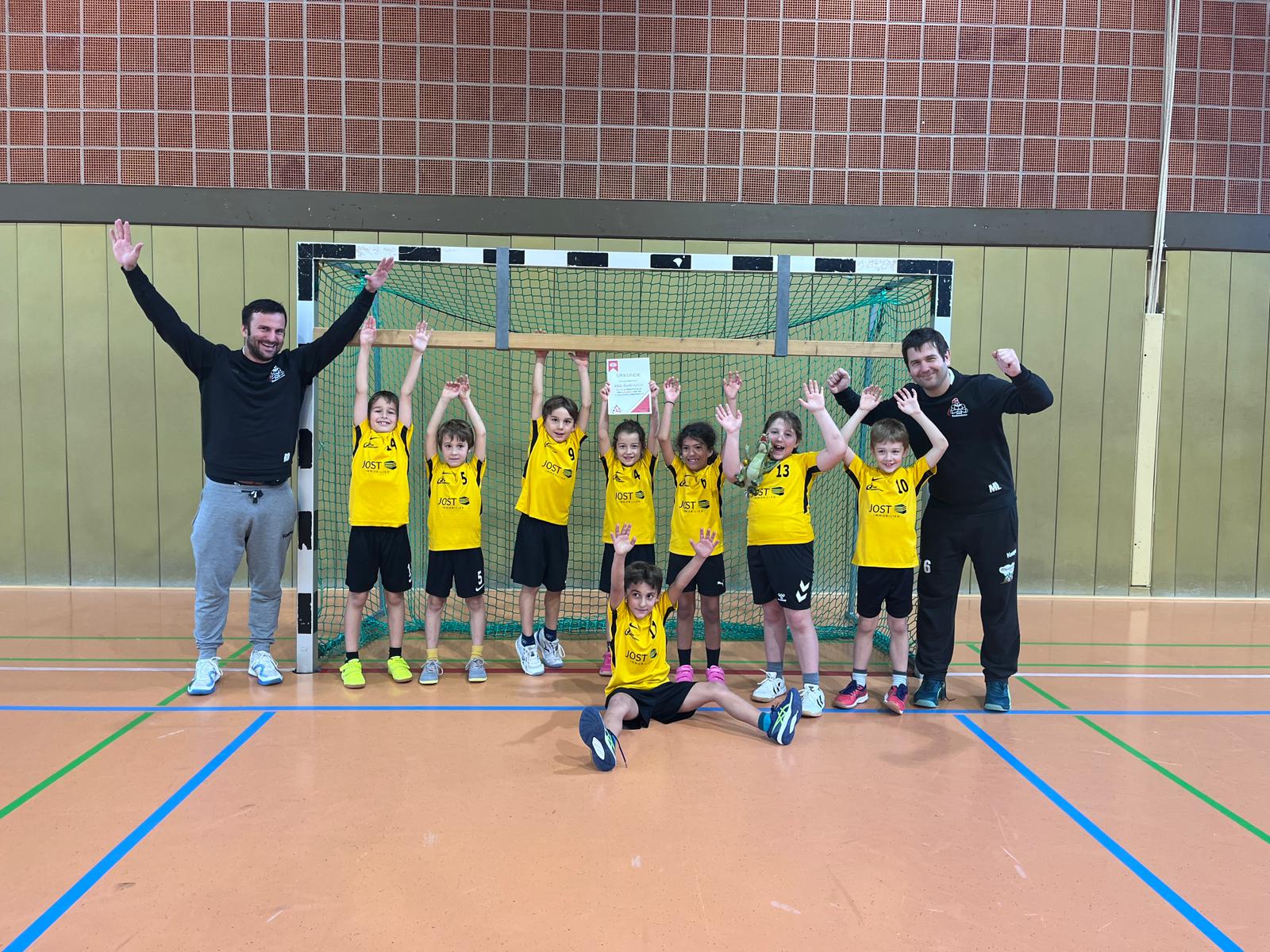 Für die HSG waren (in alphabethischer Reihenfolge) am Ball: Arian, Benno, Britta, Felix, Gerrit, Greta, Hanno, Ida, Jakob, Jonas, Justus, Leo, Lian, Luisa, Marie, Martha, Mathilda, Mattis, Mira, Sophia und Sophie sowie die Trainier Björn, Marc und Michael.
